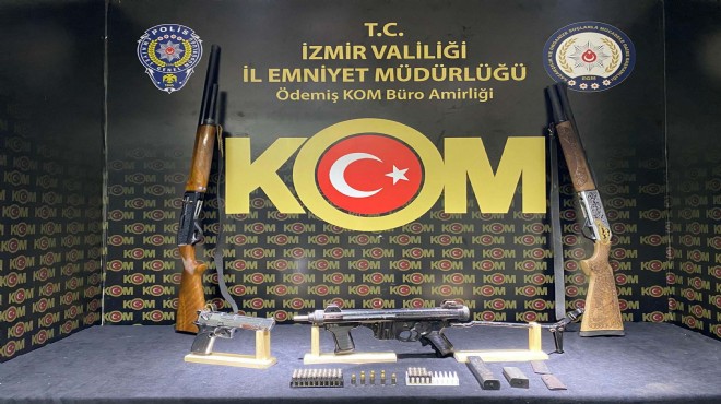 Ödemiş Cumhuriyet Başsavcılığı koordinesindeki İzmir Organize Suçlarla Mücadele Şube Müdürlüğü ve Ödemiş Büro Amirliği ekipleri, yasa dışı silah ticaretini önlemeye yönelik çalışma yaptı. Bir şüphelinin evinde silah bulunduğunu öğrenen ekipler, geçen 21 Eylül'de operasyon yaptı. Söz konusu adreste yapılan aramada 'uzi' olarak tabir edilen uzun namlulu, otomatik 1 tabanca, ruhsatsız 2 tüfek ve 80 mermi ele geçirildi. M.D ve İ.G. gözaltına alındı. Polisteki işlemlerin ardından dün adliye sevk edilen şüpheliler, savcılıktaki ifadelerinin ardından serbest bırakıldı.(DHA)