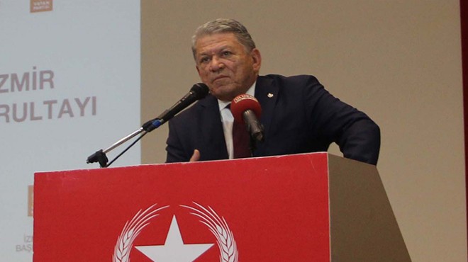 Kurultaya rakipsiz giren İl Başkanı Rifat Mutlu, güven tazeledi ve Vatan Partisi Genel Başkanı Doğu Perinçek'i Cumhurbaşkanı adayı göstermek için İzmir'de 9 Mayıs'a kadar 20 bin imza toplanacağını açıkladı. (DHA)