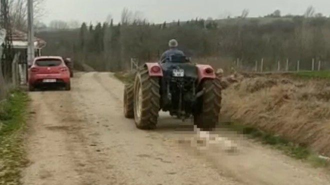 Rauf Halil B., ardından ölü köpeği iple traktörün arkasına bağladı, sürükleyerek araziye götürüp attı. O anlar, cep telefonu kamerasıyla görüntülendi.