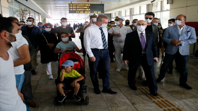 Beraberindeki heyetle Konak vapur iskelesine gelen Vali Köşger, Karşıyaka'ya gidecek vapura binerek tedbirleri inceledi.