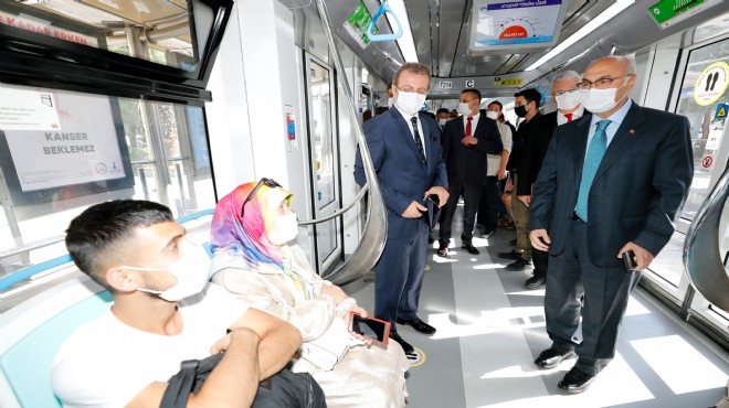 Vali Köşger, beraberindeki kurum müdürleri ile Karşıyaka ilçesinde denetlemeler gerçekleştirdi. Köşger, tramvayda yolculuk eden vatandaşlarla sohbet etti.