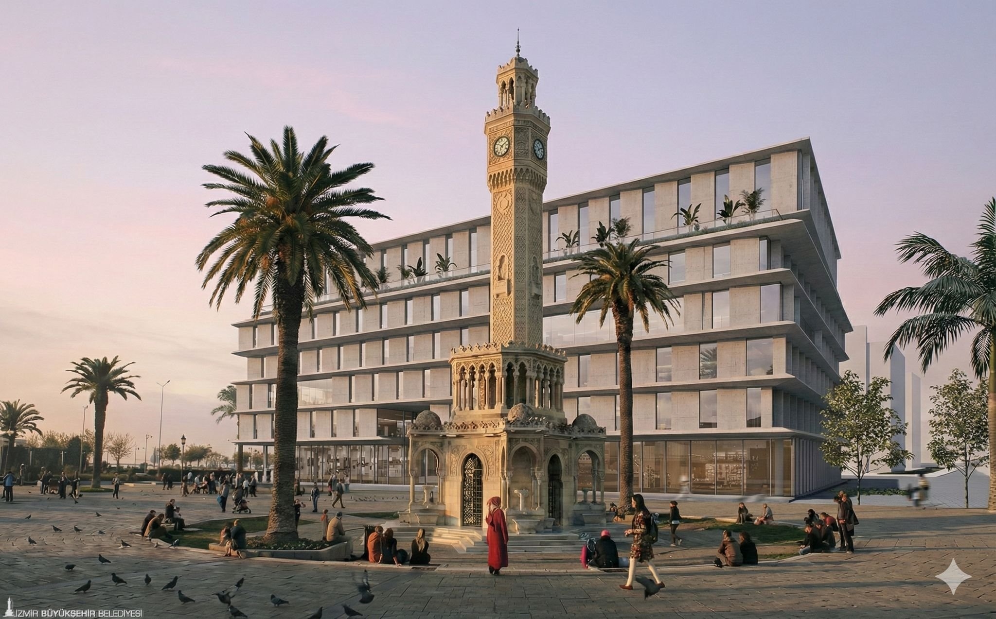 Faaliyette olduğu dönemde kentin simge mekânları arasında yer alan yapının, yıkıldığı noktada yeniden inşa edilmesine karar verildi. Yeni bina; meydanın dokusuyla uyumlu, kamusal kullanıma açık bir anlayışla tasarlandı. Yerinde inşa edilecek proje için gerekli Çevre, Şehircilik ve İklim Değişikliği Bakanlığı ile İzmir 1 Numaralı Kültür Varlıklarını Koruma Kurulu onayları alınarak yapı ruhsatı düzenlendi. İzmir Büyükşehir Belediyesi’nin ana hizmet birimlerini yeniden Konak’ta bir araya getirecek yeni yapı, Saat Kulesi ve çevredeki anıtsal yapılarla uyumlu olacak şekilde konumlandırılırken, meydanın siluetini bozmayacak bir mimari anlayışın benimsenmesine özen gösterildi.