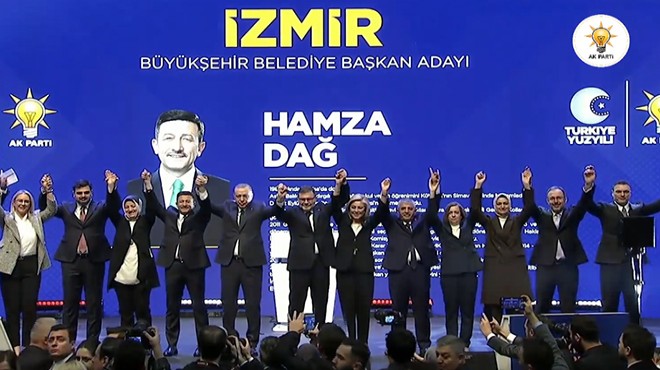Cumhurbaşkanı Erdoğan tanıtım toplantısında Büyükşehir Adayı Hamza Dağ'ı anons etmeden önce salona 'Eyy İzmir' diye seslendi ve büyük bir alkış tufanı koptu. Erdoğan ardından Dağ'ın İzmir Büyükşehir Belediye Başkan Adayı olduğunu duyurdu. Dağ kürsüye AK Parti İl Başkanı Bilal Saygılı, MHP İl Başkanı Veysel Şahin, İzmir Milletvekilleri, kadın ve gençlik kolları başkanları ile birlikte çıktı.