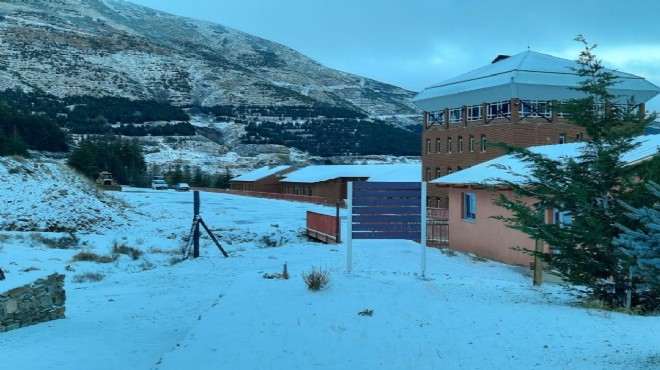 GERÇEKİZMİR - Şiddetli lodos ve sağanak yağışlarla zorlu günler geçiren İzmir'in zirvesine ilk kar düştü.