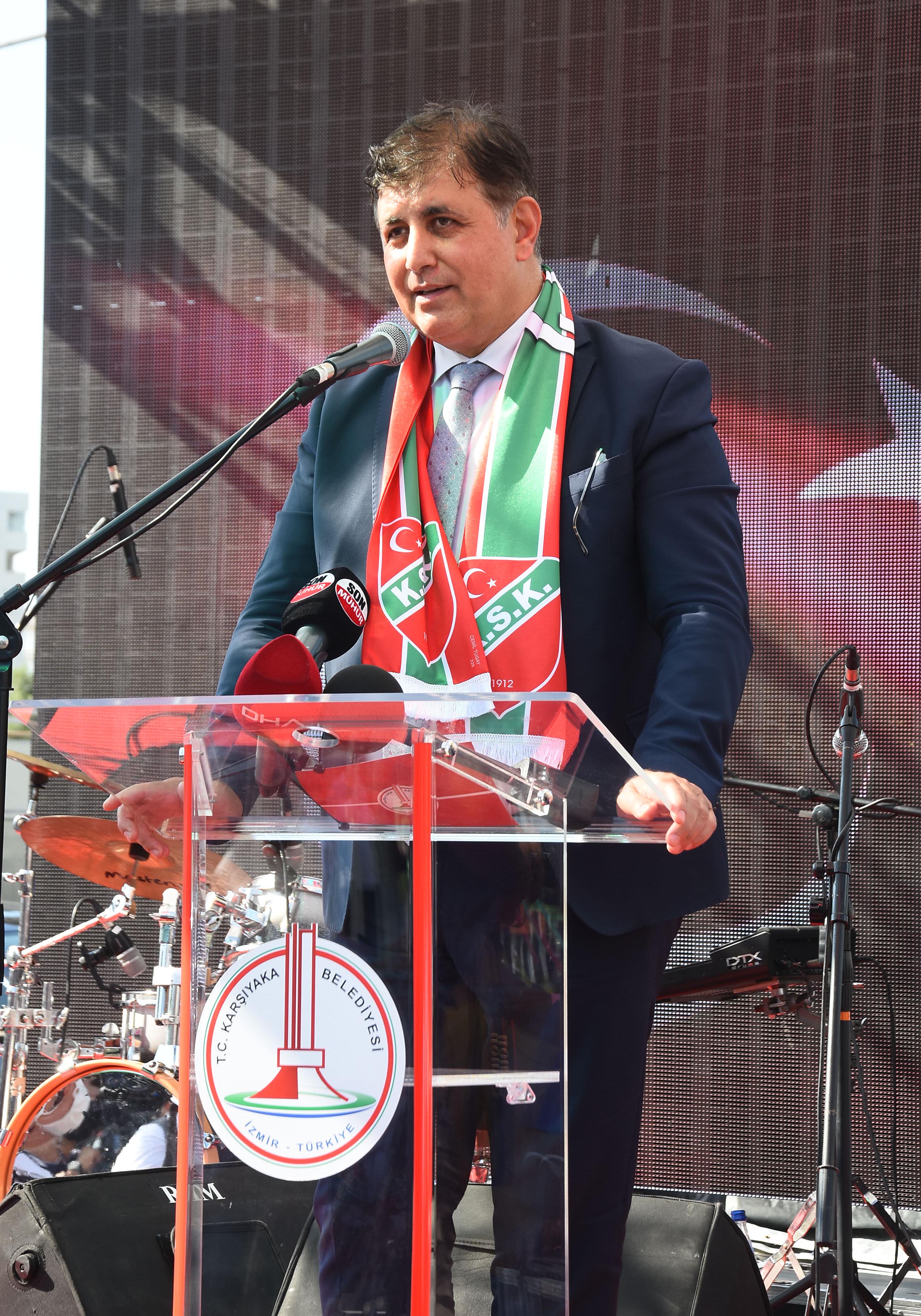 Karşıyaka Başkanı Turgay Büyükkarcı, KSK Fan Zone açılışında Türkiye'de bir ilki daha gerçekleştiren kulüp oldukları için mutlu olduğunu söyledi. Büyükkarcı, "Türkiye'nin ilk fan zone açılışını yapmak bize nasip oldu. Bundan çok büyük bir gurur duyuyoruz. Bu muhteşem mabedimizin açılmasında bize destek olan Karşıyaka Belediye Başkanı Cemil Tugay, Kent A.Ş., Büyükşehir Belediye Başkanı Tunç Soyer'e çok teşekkür ediyorum. Taraftar token çıkarmak Türkiye'de ilk bize nasip olmuştu. Bu alanın da çok ses getireceğine inanıyorum. Karşıyaka'ya önemli bir değe katacağından hiç kuşkum yok. Transfer yasağını açmak için biz yönetim olarak elimizden geleni yapıyoruz. Yaşar Holding ve belediyelerimiz ellerinden geleni yaptı. Karşıyakalı iş adamlarımızdan ve taraftarımızdan da destek bekliyoruz" dedi.