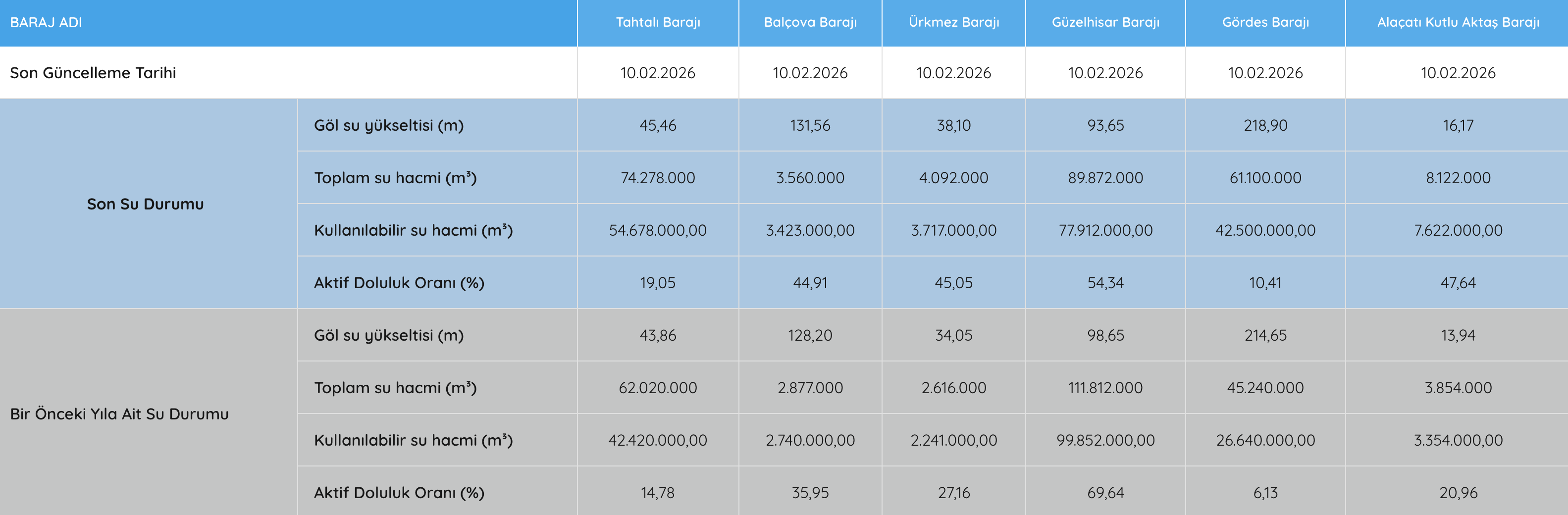 (10 Şubat 2026 Barajların Durumu)