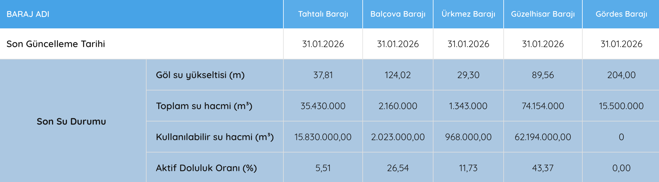 (31 Ocak 2026 Barajların Durumu)