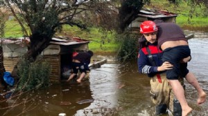 Selde mahsur kalan yurttaşı itfaiye eri sırtında taşıdı!