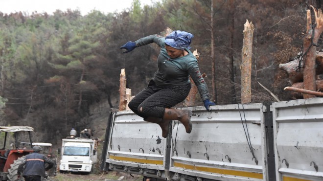 Eşi ile omuz omuza alanda çalışan Hasan Uzuner (46) de "Önce bölgedeki yanıkları temizliyoruz. Saat 06.00'da geliyoruz, akşam karanlık çökene kadar çalışıyoruz. Çok zor bir iş. Birçok kez traktör devrildi, altında kaldım ama ekmek parası. İşin birçok zorluğu olsa da biz bu işi biliyoruz. Ancak bunu yapabiliriz. Başka bir iş bilmiyoruz" diye konuştu. Menemen'e bağlı Değirmendere Mahallesi'nden çalışmak için geldiğini söyleyen evli ve 7 çocuk babası Muhittin Eyin (52) ise bir metrekarelik alana yaklaşık 30 kütük dizdiklerini, bunun karşılığında da 60 TL aldıklarını söyledi. Dağda kestikleri ağaçları yola doğru yuvarladıklarını anlatan Eyin, "Zor bir iş. Dağlar, yollar uzak. İşçi çağırıyoruz, 100 TL'den aşağı kimse gelmiyor. Öyle olunca bu kez aldığımız para bize yetmiyor" dedi. Kemalpaşa'dan iki oğlu ve gelinleri ile bölgede çalışan Tülay Yetim (56) de "İki oğlum burada, gelinlerimle birlikte çalışıyor. Ben de torunlarıma bakıyorum, yemek yapıyorum" dedi.