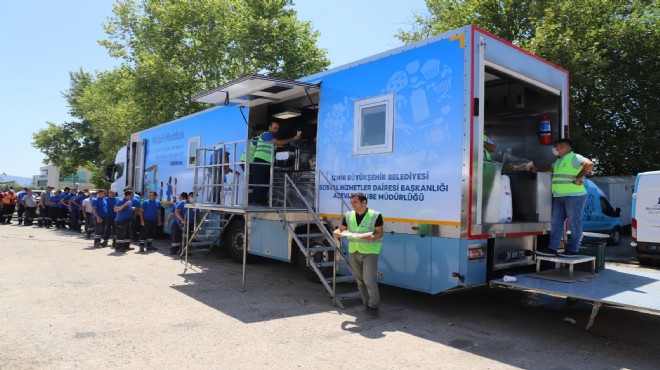 Büyükşehir Belediye Başkanı Tunç Soyer’in dayanışma anlayışı kapsamında orman yangınlarıyla mücadele eden Muğla’ya gönderilen İzmir Büyükşehir Belediyesi’nin mobil mutfak aracı cumartesi günü kente döndü. Yangın bölgesinde bir hafta boyunca hizmet veren mobil mutfak 13 bin 650 kişilik sıcak yemek, 4 bin 550 kişilik kahvaltı, 450 kişilik kumanya üretti. Böylelikle toplam 18 bin 650 kişilik yemek, kahvaltı ve kumanya dağıtılmış oldu. Günlük 3 bin kişilik yemek üretme kapasitesine sahip mobil mutfakta aşçılar, aşçı yardımcıları, gıda mühendisleri, bulaşıkçılar, şoför ve dağıtım elemanları olmak üzere 12 personel görev yaptı.