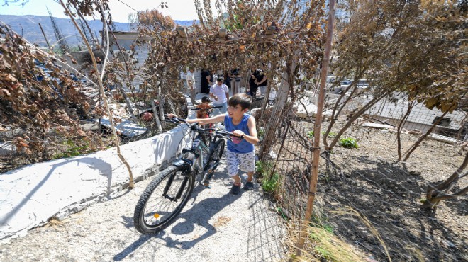 İzmir Büyükşehir Belediyesi, geçen ağustos ayında Karşıyaka’nın Yamanlar Dağı’nda çıkan yangın sonrasında bölgede yaraları sarmayı sürdürüyor. Hasar tespit çalışmaları yapan ekipler, yangından etkilenen ailelerin ihtiyaçlarını karşılamaya devam ediyor. Büyükşehir Belediyesi, Bayraklı Onur Mahallesi’nde yangından etkilenen Şimşek ailesinin evini de ziyaret etti ve bisikletleri yanan iki kardeşe kalpleri ısıtacak bir sürpriz yaptı.