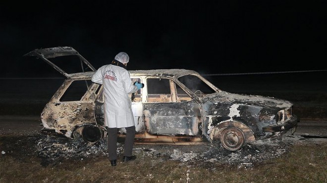 Ekipler olay yerine geldiklerinde, içerisindeki 2 kişiyle birlikte tamamen yanmış otomobil buldu.