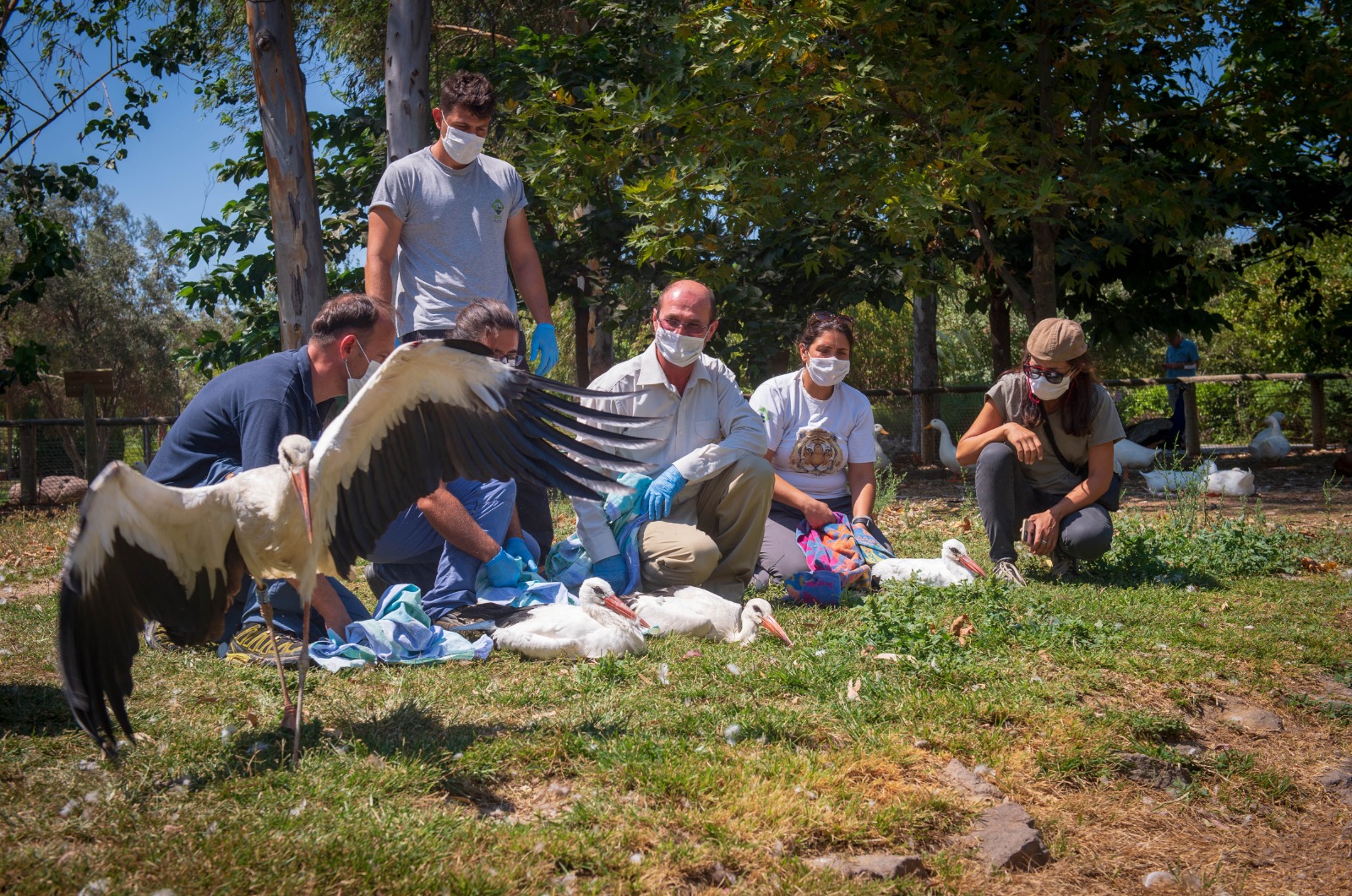 Doğada ikisi yaralı halde bulunan, diğer ikisi de güçten düştüğü için İzmir Büyükşehir Belediyesi Doğal Yaşam Parkı'nda tedaviye alınan dört leylek, veteriner hekimlerin desteğiyle sağlığına kavuştu. Ege Üniversitesi Fen Fakültesi Biyoloji Bölümü Öğretim Üyesi Doç. Dr. Ortaç Onmuş, yaklaşık iki yıldır burada bulunan leyleklerin doğaya bırakılmadan önce sağlık durumlarını kontrol etti. Gaga, kanat ve bacak uzunlukları ölçülen leylekler tanınması, izlenmesi ve korunması için halkalandı. Ardından Doğal Yaşam Parkı'ndaki Pekin Göleti alanı içerisine bırakılan leylekler, bir süre çevreyi inceledi. Daha sonra kanat çırparak havalanan leylekler, Doğal Yaşam Parkı'ndan ayrıldı.