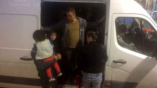 Ekiplerce, Menemen ilçesinde durdurulan bir araçta yapılan kontrollerde de göçmenleri yasa dışı yollardan yurt dışına çıkarmaya çalışan C.F. (29), A.S. (31), A.A. (25) ve R.A. (37) ile 43 yabancı uyruklu kaçak göçmen yakalandı. Araçta yapılan aramada 31 can yeleği tespit edildi.