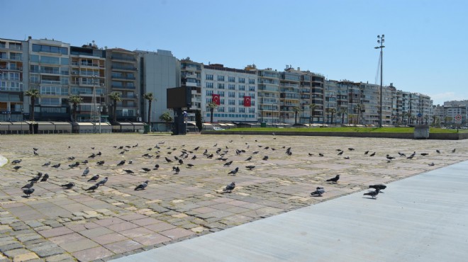 Kentin en kalabalık noktalarından olan Konak ve Gündoğdu meydanlarındaki kalabalık görüntü, yerini sessizliğe bıraktı. Kısa bir süre önce polis bariyerleriyle kapatılan ve vatandaşların girişinin engellendiği Karşıyaka Çarşısı’nda da tedbirler devam etti. Karşıyaka'nın simgesel taraftarı Mustafa Baykara'nın heykelindeki yüzüne maske takılması da çarşı girişinde dikkat çeken görüntülerden oldu.