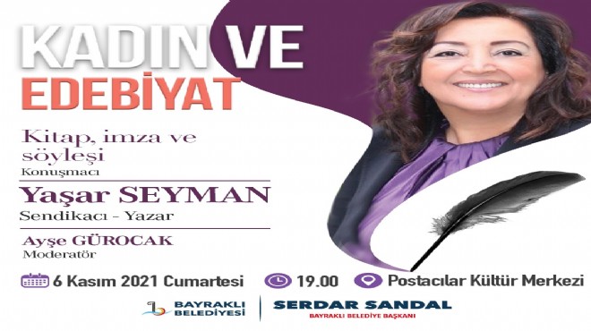 Bayraklı Belediyesinin ev sahipliğinde gerçekleştirilecek organizasyonda 'Kadın ve Edebiyat' konulu söyleşi düzenlenecek. Moderatörlüğünü Ayşe Gürocak'ın yapacağı etkinliğe CHP PM Üyesi-Yazar Yaşar Seyman konuşmacı olarak katılacak. 6 Kasım Cumartesi günü gerçekleştirilecek söyleşi, kitap imza günü etkinliği, saat 19:00'da başlayacak ve isteyen herkes ücretsiz olarak katılabilecek.