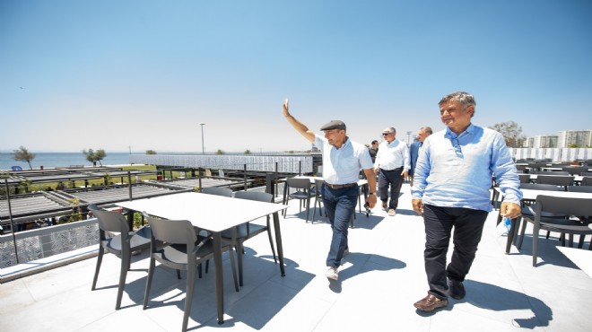 Yasemin Kafe ziyaretinin ardından Başkan Tunç Soyer, Bayraklı sahilindeki İmbat Kafe'de incelemelerde bulundu. Hasan İkat Başkan Soyer’e yenilenen kafe ile ilgili bilgi verdi.