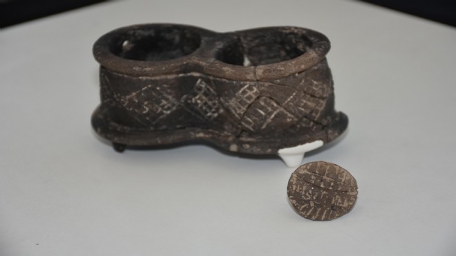Doç. Dr. Derin, bulunan ikinci eserin ise yerleşimin sosyal yapısını ortaya koyduğunu belirterek, "İkinci eserimiz sadece mezarlarda ve sosyal yapılarda kullanılıyor. Çiftli bir kap bu. 'Pyxis' adı verilen kap yaklaşık 25 santimetre boyunda. Kadınların mücevher gibi nadide ve değerli eşyalarını sakladıkları bir kutu olabilir. Özel kişilerin sadece kullanabildiği pişmiş topraktan yapılmış bir kap olarak ortaya çıkıyor" diye konuştu. (DHA)