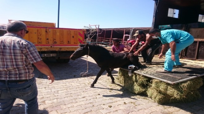 Cengizhan Mahallesi sırtlarında dolaşan yılkı atlarından birinin yaralı olduğuna dair ihbarı değerlendiren Bayraklı Belediyesi Veteriner İşleri Müdürlüğü, bölgeye hemen bir ekip gönderdi. Mahalledeki ormanlık alanı tarayan ekipler, sağ arka ayağı kırık olan yavru yılkı atını buldu. Belediye veterinerleri, ürküp kaçmaması için taya sakinleştirici iğne yaptı. Veteriner İşleri Müdürlüğü’nün fiziki ortamının atlara uygun tedaviye olanak vermemesi nedeniyle yavru taya sosyal medyada bir yuva arandı. Mutlu haber, ünlü sanatçı Haluk Levent’in yönetim kurulu üyesi olduğu AHBAP Platformu’ndan geldi. Platform üyesi hayvanseverler ile bir araya gelen Veteriner İşleri Müdürlüğü ekipleri yavru atı bir kamyonete bindirdi. Yavru at tedavisinin yapılması için Sibel Çakır’ın kurucusu olduğu, kurtarılmış çiftlik hayvanlarının bakıldığı ilk ve tek merkez olan Kemalpaşa’daki Angels Farm Sanctuary hayvan barınağına teslim edildi. Tayın tedavisine bu merkezde devam edileceği belirtildi.