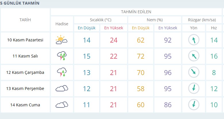11 Kasım Salı günü hava sıcaklığı 22’ye düşecek, kentte kuvvetli gökgürültülü sağanak yağış etkili olacak.
