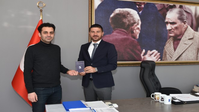 Foça Belediyesi Halkla İlişkiler Müdürlüğü personeli genç şair Kemal Çiftci, yeni kitabını Başkan Fatih Gürbüz’e hediye etti.