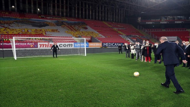 Cumhurbaşkanı Erdoğan, Göztepe Gürsel Aksel Stadı'nın açılışında penaltı kullandı, kaleye ise AK Parti İzmir milletvekili Alpay Özalan geçti. Erdoğan resmi Twitter hesabından penaltı kullandığı anın fotoğrafını paylaşıp, "Durmak yok, gollere devam" notunu düştü.
