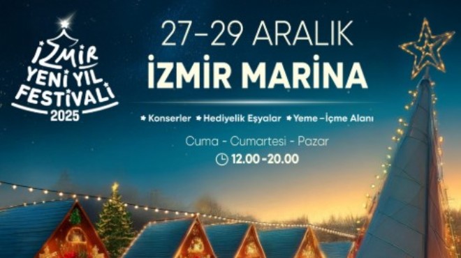 İzmir Büyükşehir Belediyesi iştiraki İZDENİZ, 2025 yılının bitmesine sayılı günler kala İzmirlileri 27-29 Aralık tarihleri arasında Yeni Yıl Festivali ile buluşturuyor. 7 Aralık’tan bu yana Kültürpark’ta devam eden Yeni Yıl Festivali’nin bir ayağı olarak İzmir Marina'da düzenlenecek renkli etkinlik kapsamında vatandaşlar hem hediye alışverişi yapabilecek hem de keyifli vakit geçirecek.