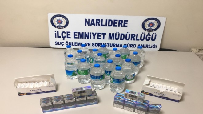 Narlıdere İlçe Emniyet Müdürlüğü ekipleri, yeni yıl öncesinde kaçak alkol, sigara ve cinsel güç artırıcı ürünlerinin satışını yapan iş yerlerini tespit etti. Harekete geçen polis ekipleri, belirlenen adreslere eş zamanlı operasyon düzenledi. Polis ekiplerinin yeni yıl öncesi kaçak ürünlerin satışını önlemek amacıyla yaptığı baskında, 1’er litre pet su şişeleri içerisinde toplamda 17 litre etil alkol, pet şişe içerisinde 9,5 litre sahte rakı, plastik bidon içerisinde 5 litre sahte votka, cam şişe içerisinde 1 litre bandrolsüz şarap, cam şişe içerisinde 500 mililitre viski, 7 rakı kiti, 17 bandrolsüz sigara, 12 bandrolsüz sarma sigara, 17 cinsel güç artırıcı bandrolsüz macun ve 2 paket elektronik sigara kiti ele geçirildi.