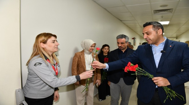 Çiğli Eğitim ve Araştırma Hastanesi’ni ziyaret eden Başkan Yıldız, sağlık çalışanlarına moral desteği verdi. Ziyareti sırasında Başhekim Doç. Dr. Adnan Yamanoğlu’na çiçek takdim eden Yıldız, ardından tüm sağlık emekçilerine karanfil dağıtarak, özverili hizmetlerinden dolayı teşekkür etti.