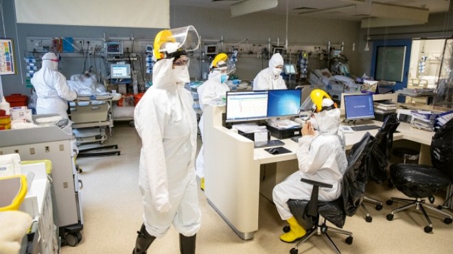 İlkses Gazetesi'nden Çağla Geniş'in İzmir’de büyük bir hastanenin yoğun bakım servisinde çalışan doktor ‘yeni pik’ döneminde pandemiyle mücadelede gelinen noktayı anlatırken, yatak doluluk oranından hastalığın korkutucu seyrine, donanım eksiklerinden yaşanan trajik anlara kadar uzanan çok sayıda önemli konuda çarpıcı açıklamalarda bulundu. Serviste hastaların yan yana ve karşılıklı olarak yattıklarını ve ağır hastalara müdahale sırasında bu anlara şahitlik etmek zorunda kalan bilinci açık hastalar için durumun daha kötü bir hal aldığının altını çizen doktor, ciddi bir oksijen açlığıyla başlayan klinik gidişatın nefesin “Nefes alamıyorum” demeye bile yetmediği noktaya vardığını söyledi. Ayda 330 saati bulan mesainin gölgesinde ilaç, ekipman ve yatak gibi donanımlar ekseninde yaşanan yetersizliğe de değinen doktor, “Bakanlığın açıkladığı rakamlara göre yoğun bakım doluluk oranı yüzde 60 civarında. Fakat pandemiden sonra bu oran bizde yüzde 99’a bile düşmedi. Yoğun bakım yatak sayısı neredeyse 2 katına çıkarılmış olmasına rağmen yetersiz. İlaçlar bitti, tıbbi malzemeler bitti. Yerini tutamayacak ama benzer etkilere sahip ilaçları kullanmak zorunda kalıyoruz, onların da stokunun azaldığını duyuyoruz” sözleriyle anlattı.