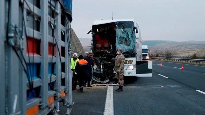 Mehmet Cevat K. idaresindeki 06 AIM 10 plakalı Özel Diyarbakır'a ait yolcu otobüsü, Şanlıurfa-Gaziantep Otoyolu'nun 75. kilometresinde Yunus A'nın kullandığı 73 EA 424 plakalı TIR'a arkadan çarptı.