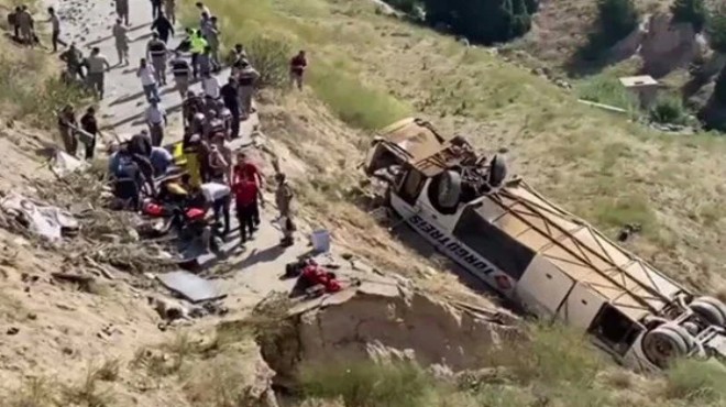 Yaklaşık 50 metre yükseklikten düştükten sonra ters dönen otobüsteki 7 kişi yaşamını yitirdi, 22 kişi yaralandı.