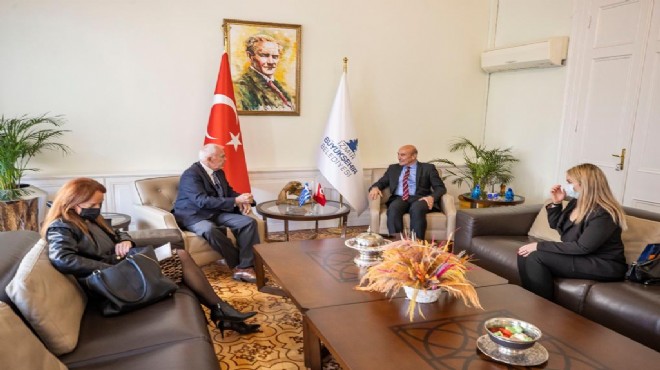 Büyükşehir Belediye Başkanı Tunç Soyer, Yunanistan’ın Ankara Büyükelçisi Michael Christos Diamessis ile İzmir Başkonsolosu Despoina Balkiza’yı makamında ağırladı. Büyükelçi Diamessis, görev süresinin sona ermesi nedeniyle yaptığı veda ziyaretinde Başkan Tunç Soyer’e ikili ilişkilere verdiği destek için teşekkür ederken “Devletler arasında çok yakın ilişkiler olmadığı halde sizin verdiğiniz bu destek için müteşekkiriz. Ortak geçmişimiz, iyi kötü anılarımız var. Artık sadece güzel anılarla devam edeceğiz” dedi. Başkan Tunç Soyer de “Tam da bu nedenle ilişkilerimizi geliştirmeliyiz. Gelecek bizim. Dayanışma ile ilerleyeceğiz” diye konuştu.