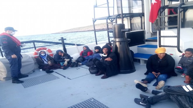 İZMİR - Çeşme ilçesinden yasa dışı yollarla geçis yapmak isteyen ve Yunan askeri tarafından içinde bulundukları botun motoru sökülerek geri itilen 14 kaçak göçmeni, Türk Sahil Güvenlik ekipleri kurtardı.