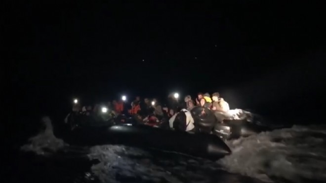 Yine Dikili ilçesi açıklarında Yunanistan unsurlarınca Türk kara sularına geri itilen lastik bottaki 9 düzensiz göçmen karaya çıkarıldı.