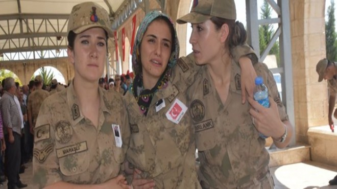 Eşinin asker kıyafetlerini giyerek cenaze törenine gelen Beyhan Yanık, şehit eşinin Türk bayrağına sarılı tabutu önüne gelerek öptüğü ve gözyaşı döktüğü görüldü.