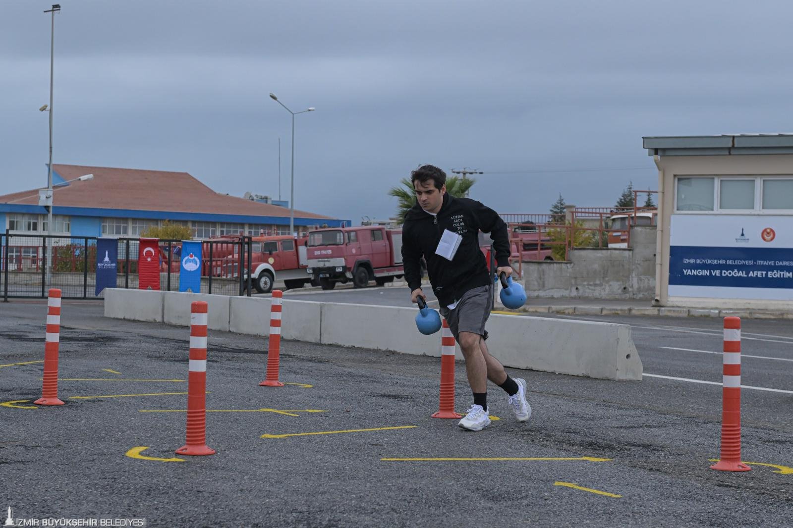 Uygulamalı sınav önce 100 metre engelli koşusu ile başladı. Ardından ağırlık kaldıran adaylar, 20 metrelik tünelden geçti. Bir dakika şınav ve mekik çektikten sonra ise sözlü sınava katıldı. İzmir Büyükşehir Belediyesi Genel Sekreter Yardımcısı İsmail Mutaf ile İzmir Büyükşehir Belediyesi Genel Sekreter Yardımcısı Çağatay Güç’ün de yer aldığı sözlü mülakatta, adaylar soru kitapçığını kura ile kendileri seçti. Adaylara Türkiye Cumhuriyeti Anayasası, Atatürk İlkeleri ve İnkılap Tarihi, 657 sayılı Devlet Memurları Kanunu, mahalli idarelerle ilgili temel mevzuat konularından sorular yöneltildi.