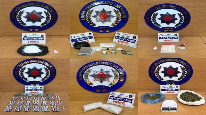 İl Emniyet Müdürlüğünden yapılan açıklamaya göre, 5-11 Mart'ta gerçekleştirilen operasyonlarda, 786 gram esrar ve skunk, 43 gram kokain, 3 bin 610 captagon, 43 gram sentetik kannabinoid, 1 kilo 545 gram metamfetamin, 301 ectasy, 2 bin 783 yeşil reçeteyle satılan ilaç, 1 ruhsatsız tabanca, 1 şarjör, 11 fişek ve uyuşturucu ticaretinden elde edildiği değerlendirilen 2 bin 867 lira ele geçirildi.