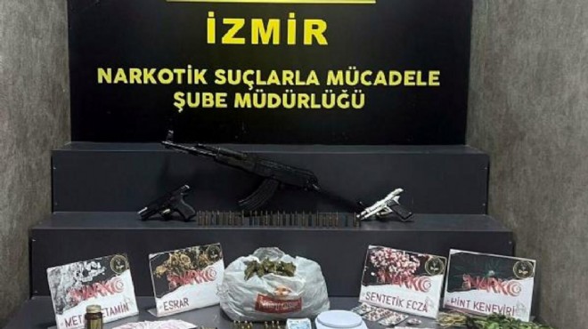 Operasyonlarda 140 kök kenevir bitkisi, 3 kilo 523 gram esrar, 964 gram metamfetamin, 18 bin 348 sentetik ecza, 11 hassas terazi, 5 tüfek, 12 tabanca, 199 fişek ile suçtan elden edilen 45 bin lira ele geçirildi.