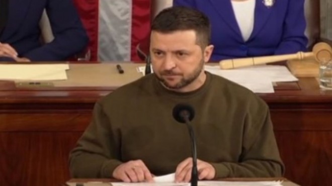 AA'nın haberine göre; Zelenskiy, ABD Kongresinde Cumhuriyetçiler ve Demokratların ortak katıldığı bir oturumda Kongre üyelerine hitap etti.