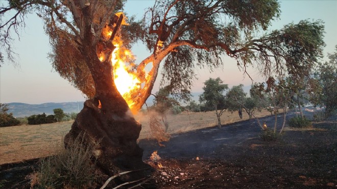 Rüzgarın etkisiyle büyüyen yangın, zeytin ve incir ağaçlarının bulunduğu bahçeye sıçradı.