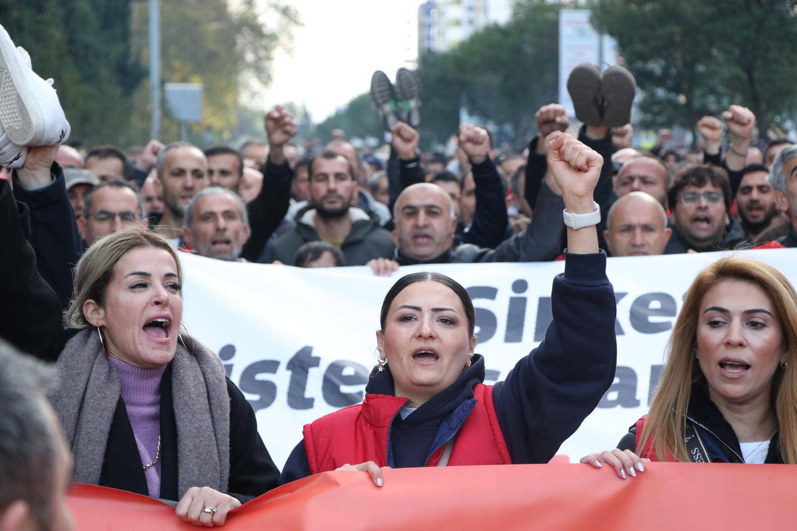 Bizim derdimiz sokağa çıkmak değil. Aylardır müzakere yolunu masada sürdürmek istedik. Maaşa dokunduğun zaman işçiye dokunuyorsun ve bunu bürokratlar anlamıyor. Kendi maaşlarına dokunulsa ne yapacaklar? Bunu hissetsinler, sonra da işçiyi düşünsünler. Şirkete iade olan, havuzda bekleyen arkadaşlarımız bir an önce iş yerlerine dönsün; işten çıkarmalar son bulsun. Bizler ayın 6’sı gecesi maaşımızı tam istiyoruz. Toplu sözleşmedeki haklarımızı gününde istiyoruz. Haklarımızı tekrar talep ediyoruz ve bunları gününde istiyoruz."